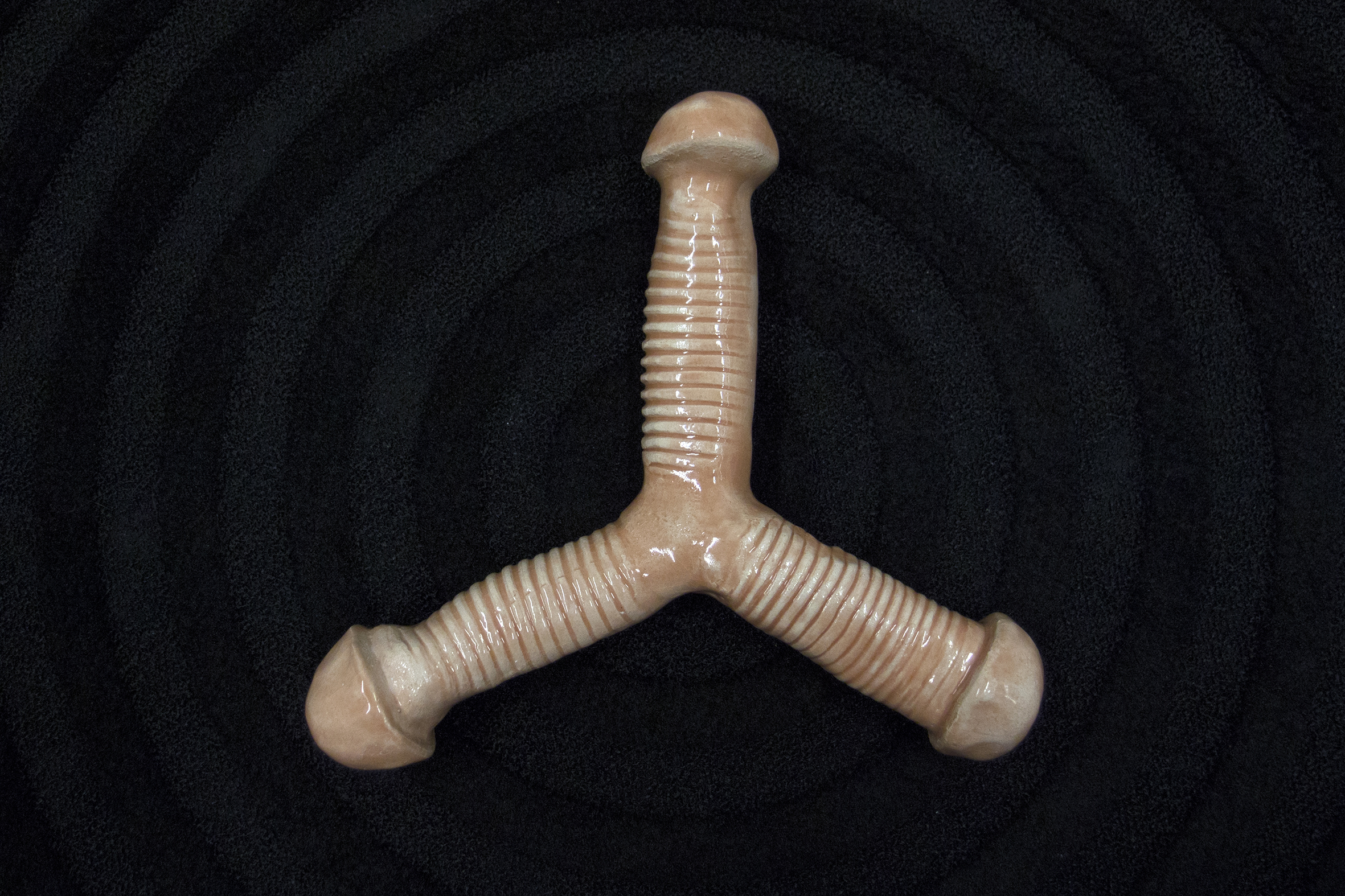HIGH - TECH / HIGH - AZTECH deals with the culture of the Aztecs from their beginnings to the conquest of the Spanish Crown by Cortez. It is the process of the Aztec Cult transforms to a culture. At the beginning of this cult there was a glorification to the establishment of the laws of nature with all its complex structures, gods and worships nature along with its flora and fauna as far as a high culture with an archaic system of laws. Civilization has continued to develop (technically) and the progress brought the Aztec civilization ever further from its origins way of the realization of the laws of nature through the establishment of laws to control society. Until Cortez finally broke over their civilastion with his armed army and defeated them. Although Cortez was outnumbered, his warriors were able to defeat the Aztecs by their superiority by using High-Tech or firearms. Cortez established a „New World“ that separated the unity with the forces of nature. Cortez established a new constitution, which banned the Aztech´s belief systems, as traditions, customs and rituals and its execution were prohibited under penalty. The Aztecs had to follow the Catholic and Western customs, and this interfered with their indigenous traditions. This natural originality is symbolized here with the Ouroboros, the snake biting its own tail, as hermetic higher system that is similar to the concept of perfection. The unity of „force of nature“ dissolves and comes alive in the form of a snake. The perfect endlessness which is a circle here, dissolves and transforms into a linearity of the finite and transformed the dynamic snake up to the static inorganic symbol of police baton. By the laws of nature to the laws of human civilization. The baton looks minimalistic, primitive and archaic in its form and is used to control crowds. It symbolizes a specific form of violence, targeted personal violence. The Aztecs demonstrated their violence by ritual sacrifices to appease the gods and their representation of the forces of nature. In our modern society is the police also „sacrifices“ for the rights and constitution and freedom and the state power organs are categorized into three parts: the executive - legislative - judicial.